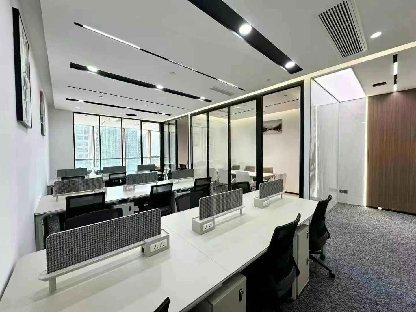 装修:格局:3隔间+20工位。精装修带家具